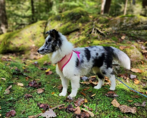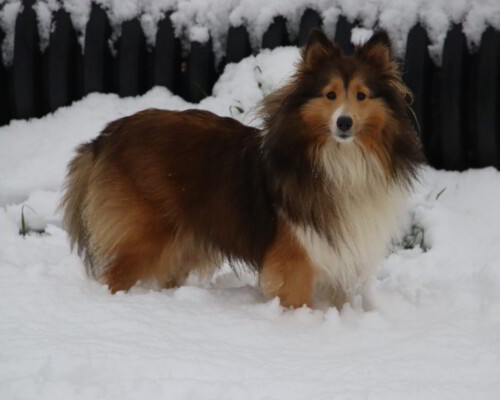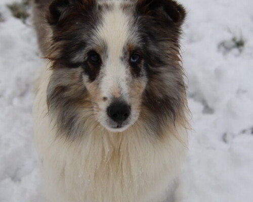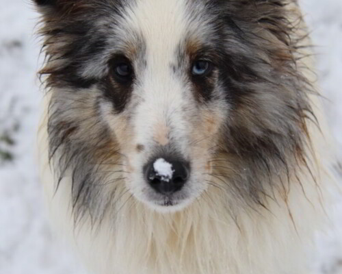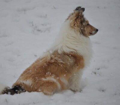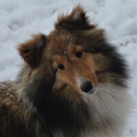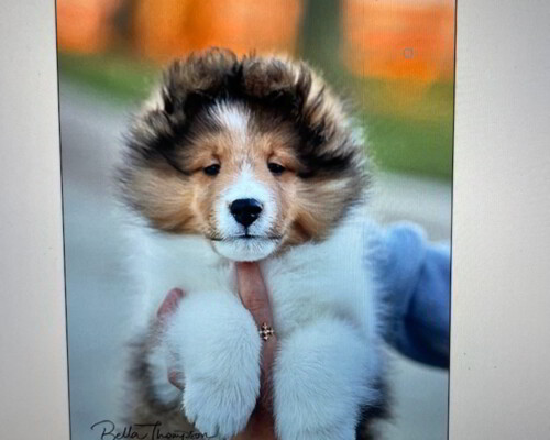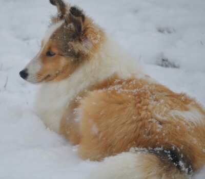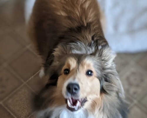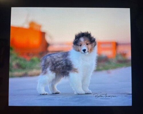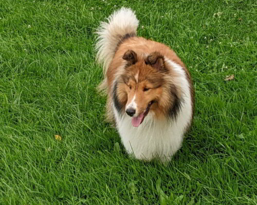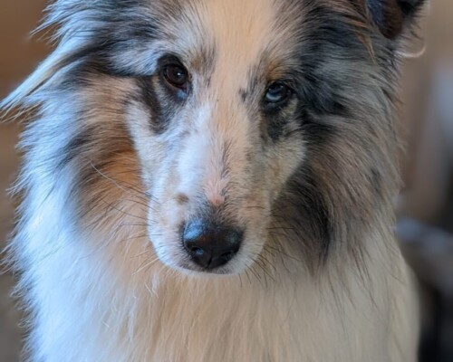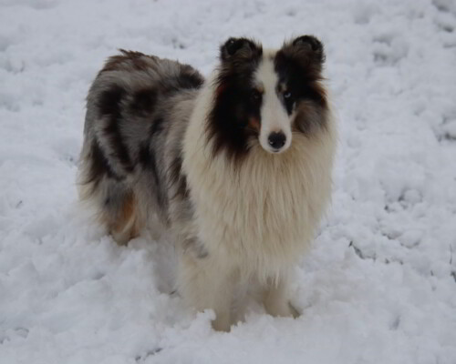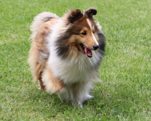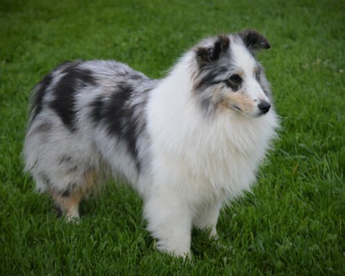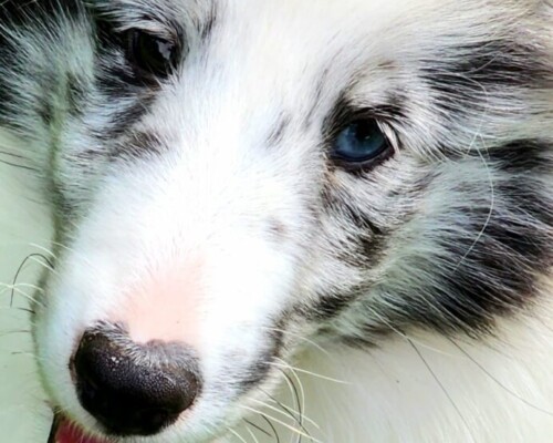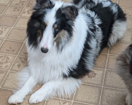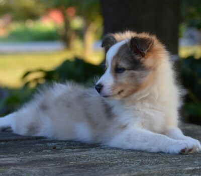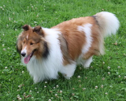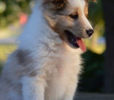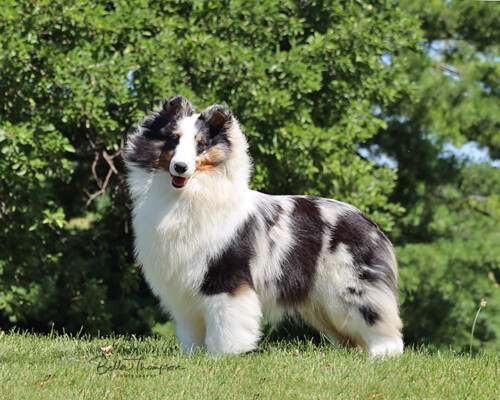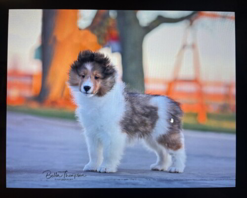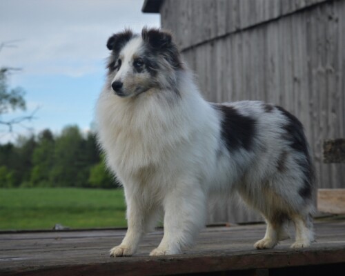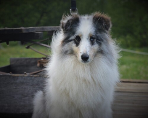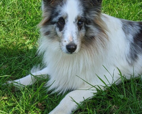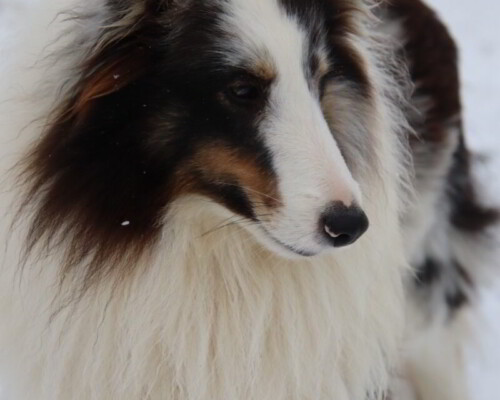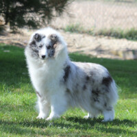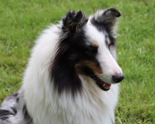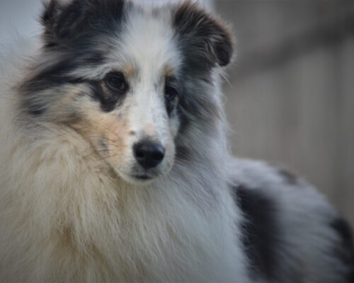 This is a Sheltie with a huge zest for life. She has boundless joy and loves to see what is going on around her. Orchid is a bi-black factored blue merle. Her puppies have become beloved family members over many states and we love hearing from their new families. She and Connor can produce tri, bi-black, blue merle, and bi-blue merle puppies. We have kept a bi-blue merle daughter from this pairing, Izzy, who is a bundle of joy. We were also pleased with April 2024 puppies from Orchid and Vinny. This pairing produced sable and white puppies with outgoing and friendly natures as well as being truely beautiful shelties. They can be seen on the puppy page. Again we thank Bella Thompson Corwin of Belmark Shelties for sharing her wonderful dogs with us.