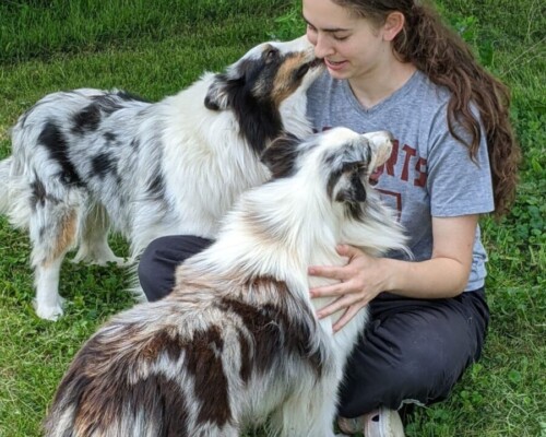 Glitter joined us in December 2016. She is a funny, sweet, and joyful girl. We were very pleased with what she produced. You can see her 2017 Ryan daughter, Ruby, below. Charity (now Holly) from Nell and Vinny’s 10/13/23 litter is Glitter’s new friend as she has joined Melissa, Lee, and Glitter’s pack.